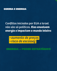 No caso da energia, o conflito reacende um debate que nunca deveria ser minimizado: segurança e soberania energética. E nesse campo, improviso é sinônimo de fracasso. Segurança e soberania energética exigem visão de longo prazo, planejamento e investimento. Deve ser política de Estado. E o Brasil já esteve bem mais próximo desse objetivo.