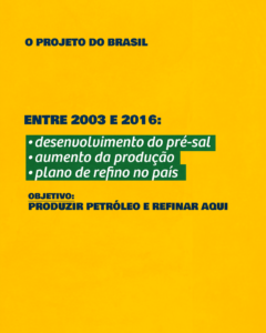 Entre 2003 e 2016, a Petrobrás e o Estado brasileiro conduziram um dos projetos energéticos mais ambiciosos da nossa história. O primeiro passo foi assumir altíssimos riscos e investimentos na descoberta e desenvolvimento do pré-sal. A partir daí, o país passou a figurar entre os grandes produtores de petróleo do mundo. O plano, porém, não se limitava ao óleo cru: buscava também a autossuficiência em derivados, como diesel, gasolina e querosene de aviação, com a ampliação da capacidade de refino.