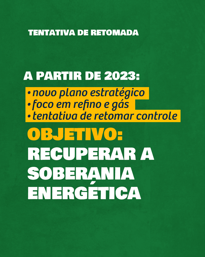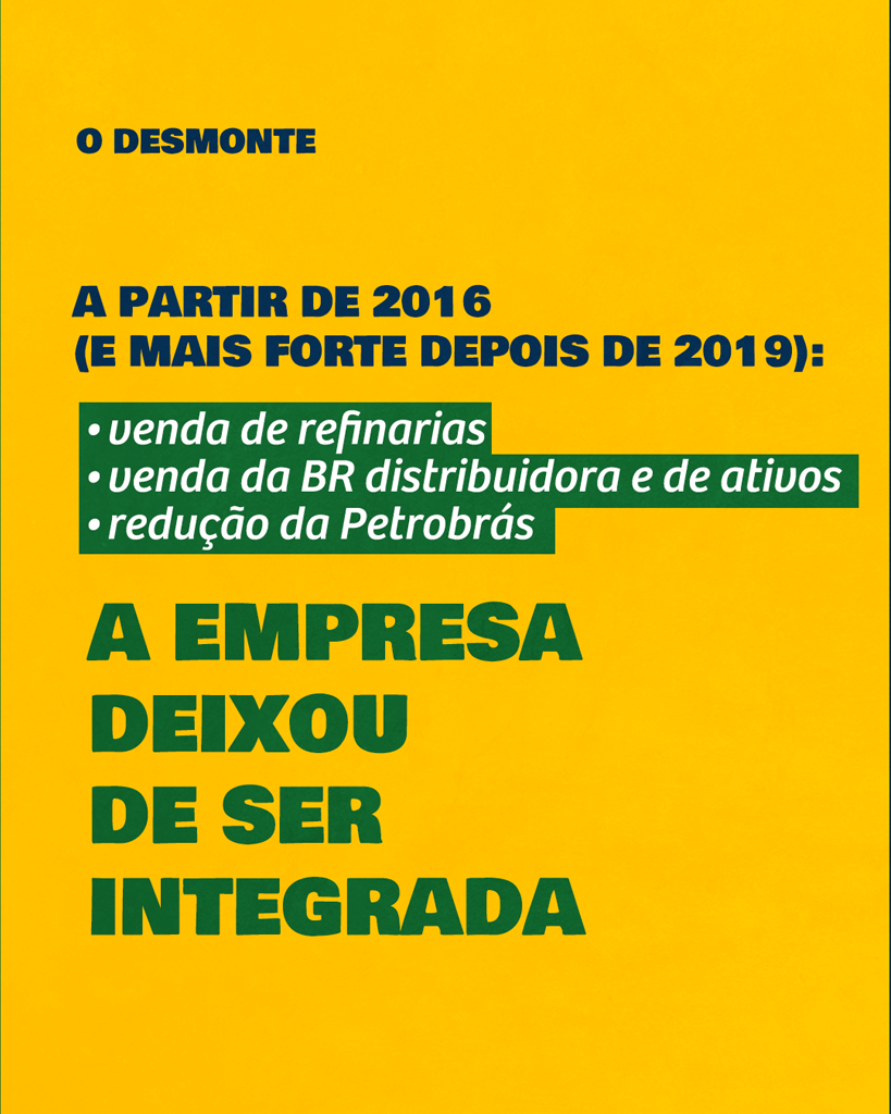A capacidade do Estado, por meio da Petrobrás, de regular o mercado de derivados foi anulada completamente com as privatizações. Resgatar esses ativos estratégicos, reintegrar e reverticalizar o Sistema Petrobrás não deveria ser uma pauta apenas em tempos de crise ou restrita a movimentos sociais e sindicais. Essa bandeira deve se manter erguida de forma permanente, para todos que defendem um Brasil soberano e justo.